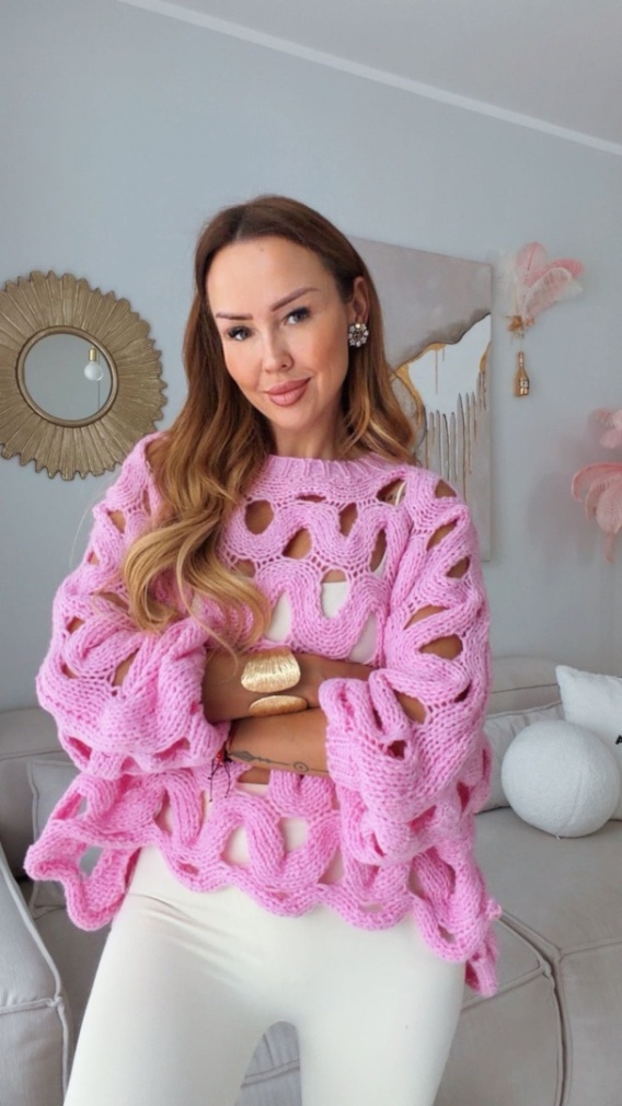 Ażurowy sweter Venice róż