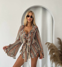 Kombinezon Eden w klimacie boho! Duży dekolt wykończony falbaną, lekkie rozszerzane rękawy i spodenki z blokowym wzorem, które możesz marszczyć wedle uznania. Stylowo, wygodnie i kobieco - idealny na wiosenne dni i letnie wieczory!