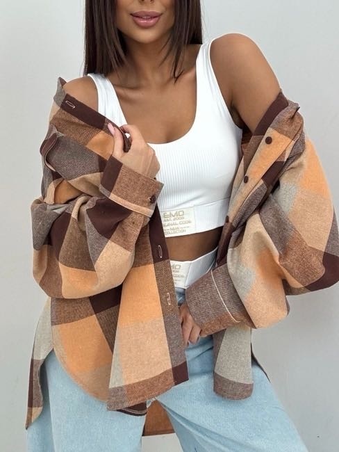 Modna koszula w intensywną kratę , w kolorach pomarańczy u brązu. Rozmiar uniwersalny .