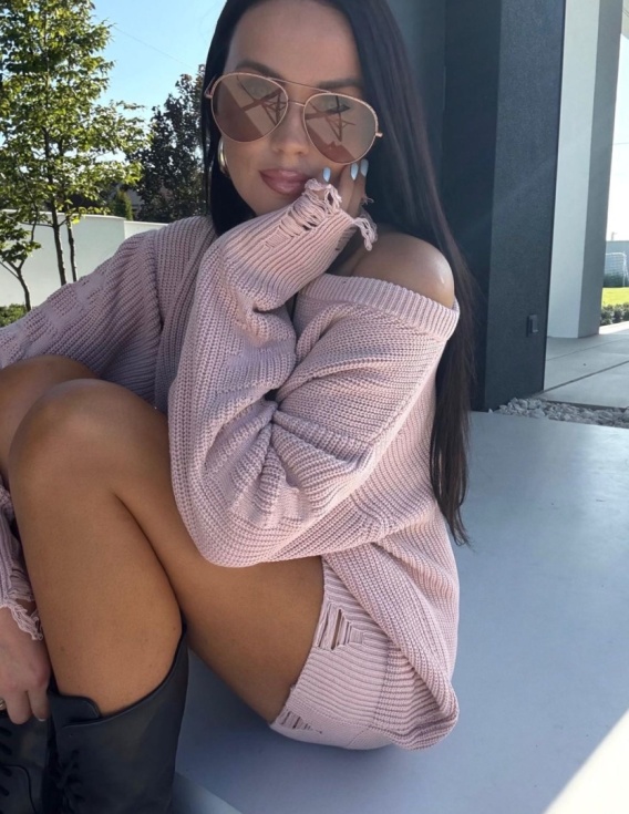 Dłuższy sweter w przepięknej gamie kolorystycznej, logowany na rękawie, przetarcia i szarpania miejscami. Stworzycue z nim rewelacyjny , miejski look. Idealny do dzinsow, ramoneski.