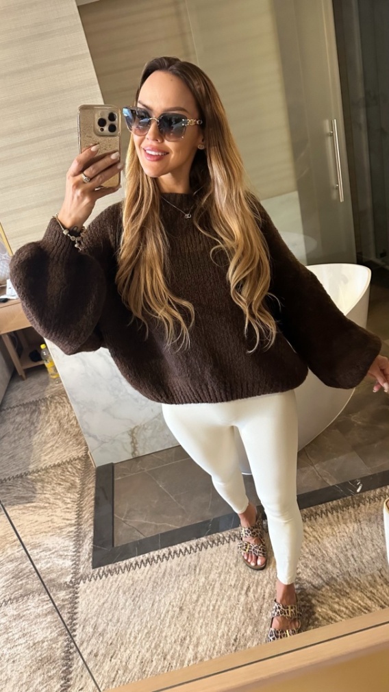 Miękki , delikatny sweter w czekoladowym kolorze.