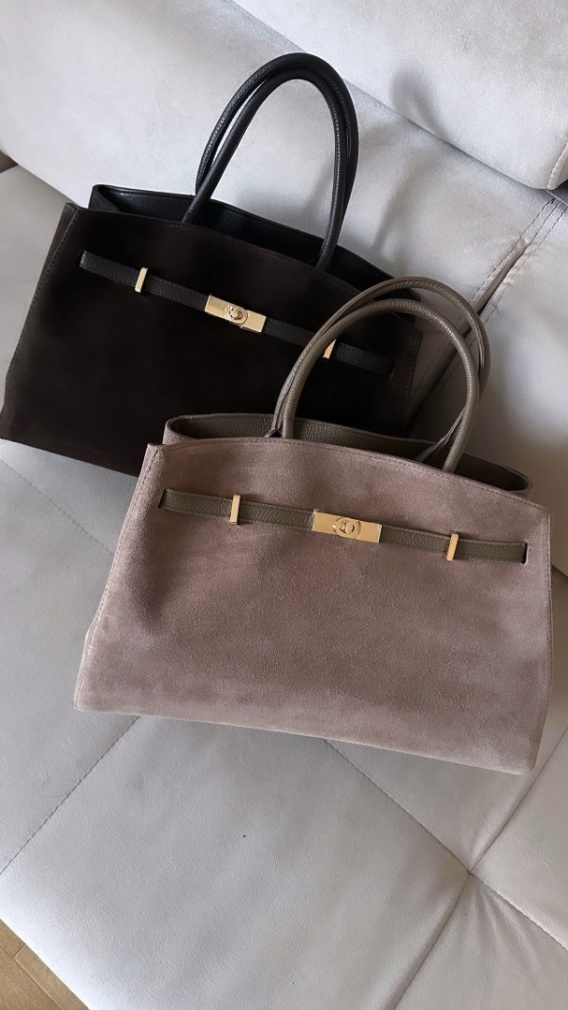 Torba ze skóry zamszowej w kolorze fango, mieści A4.